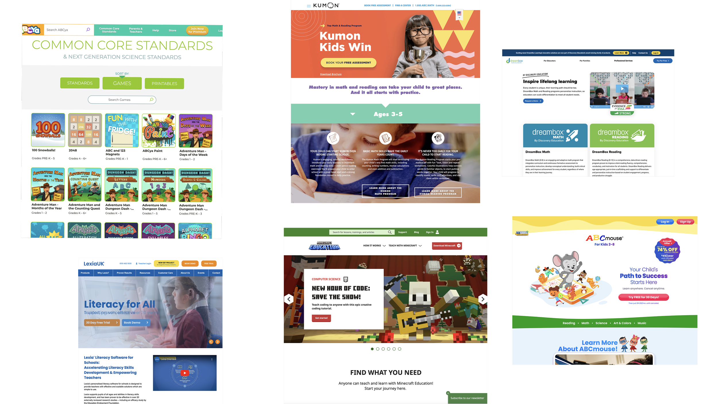 Trust & Safety – Almost every site had extensive privacy and safety messaging, plus testimonials to build credibility with parents and educators.