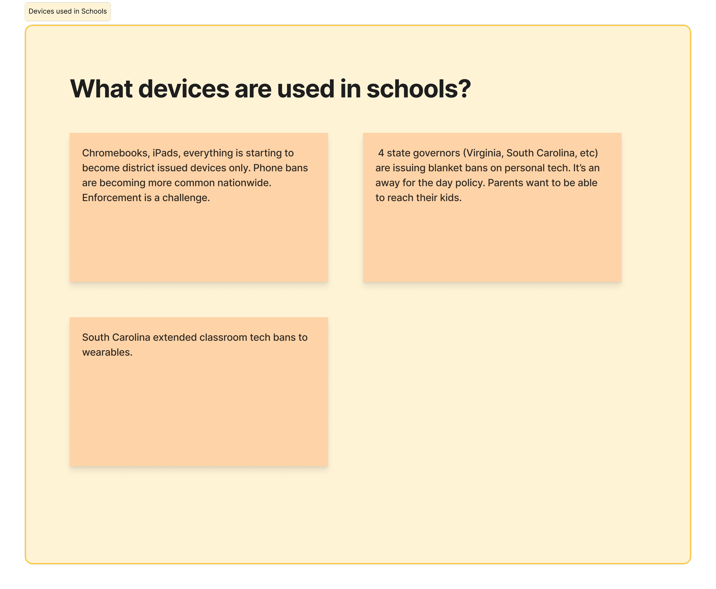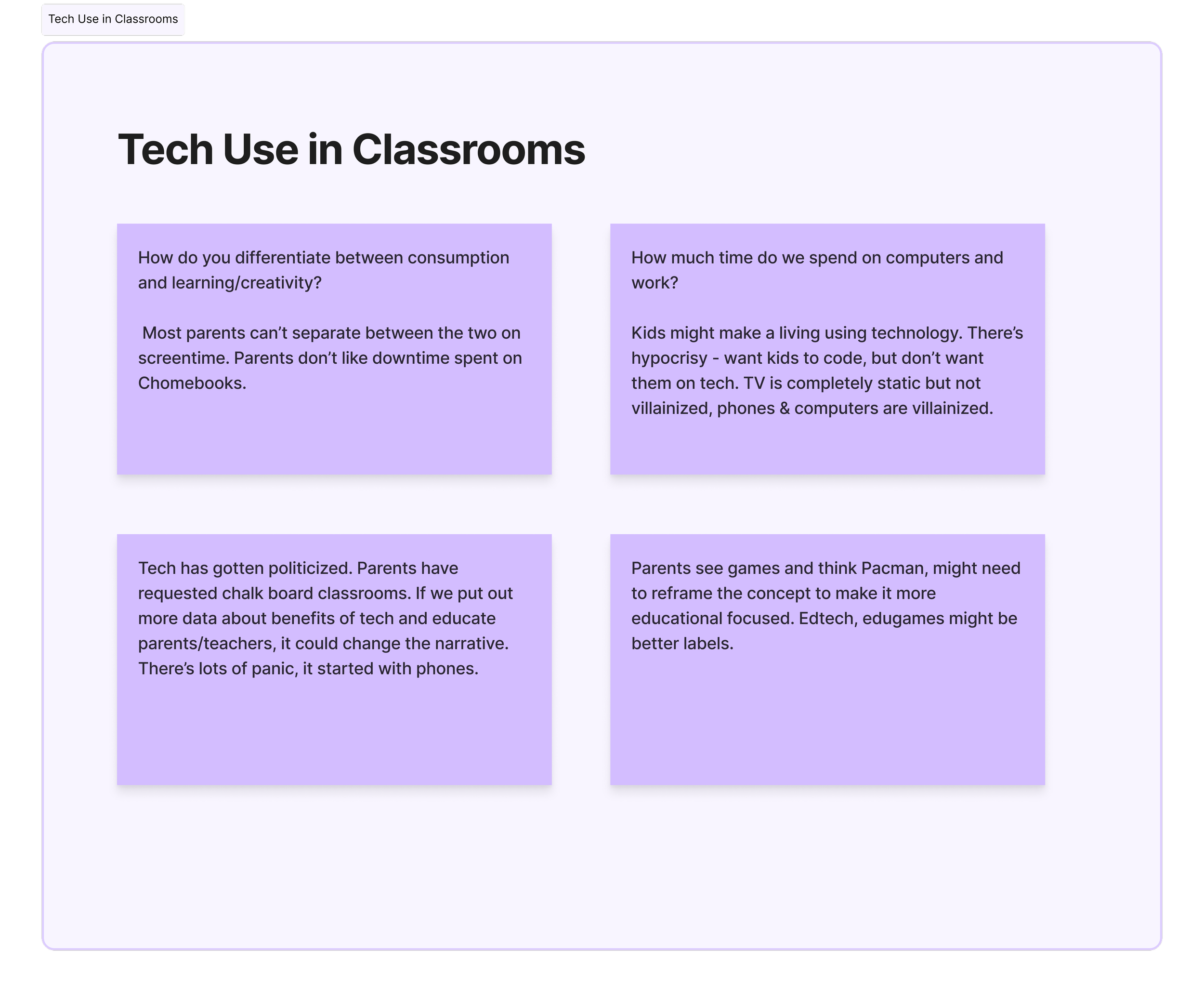 I conducted ongoing teacher interviews, analyzed surveys, and performed market research to understand the educator audience segment and the edtech landscape.