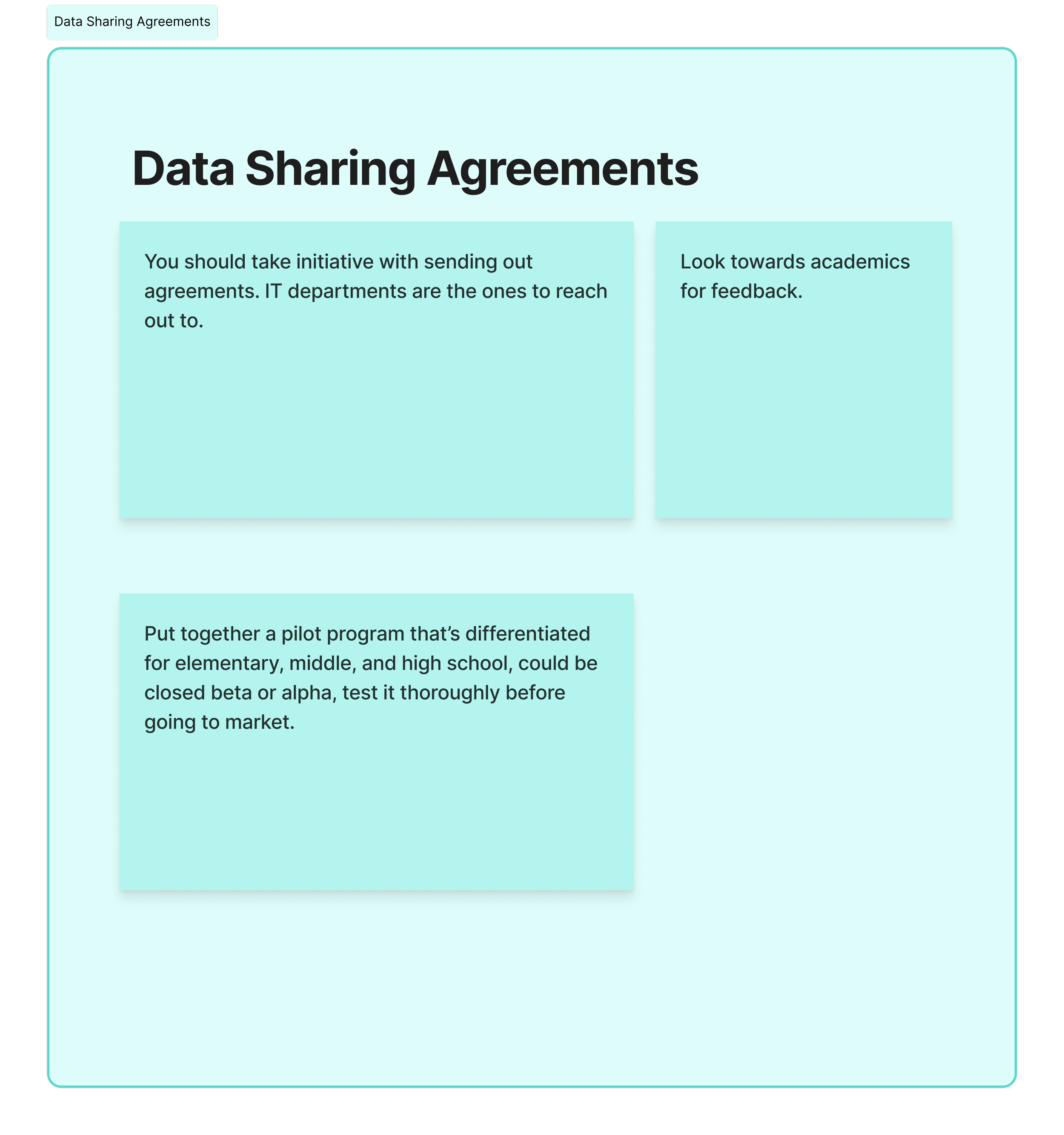 To take this project further, I would explore the audience segments of neurodivergent students & homeschoolers in-depth and identify ways to make the product more inclusive for those groups. I'd also conduct more refined user research using Dovetail.