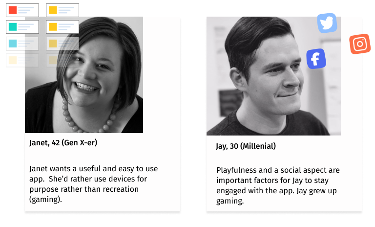 User archetypes were created based on user research to better understand the target demographics.