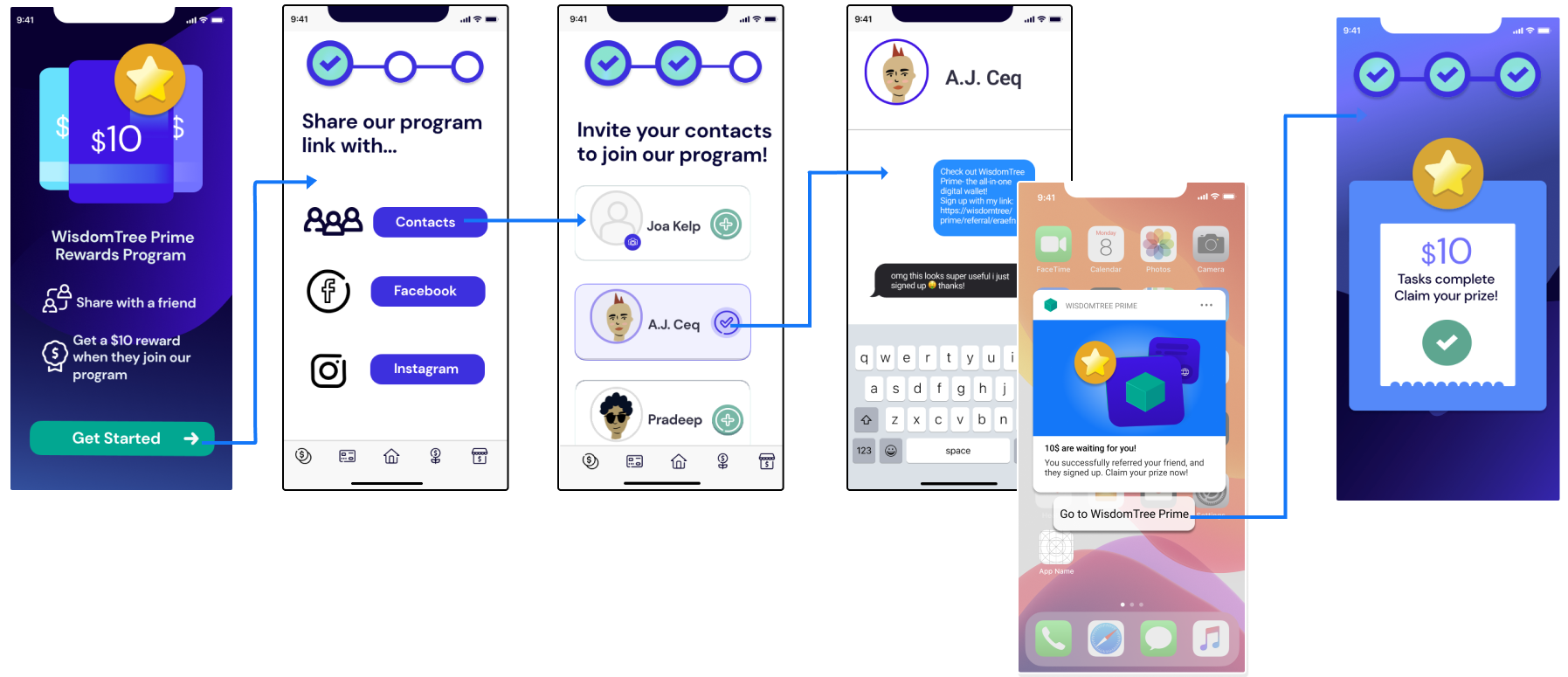Over a three-month internship, I served as an Experience Design Intern for WisdomTree Prime. I drove improvements to their rewards and referral program through user and competitor research, directly impacting the app's design and launch.